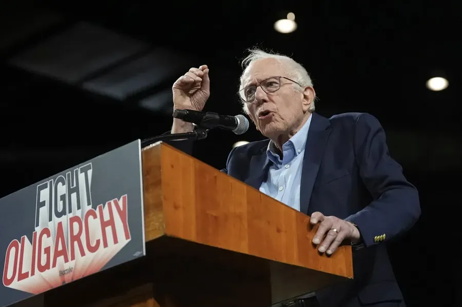 Sen. Bernie Sanders, I-Vt., speaks during a “Fighting Oligarchy” tour event at Arizona State University. © Ross D. Franklin/AP