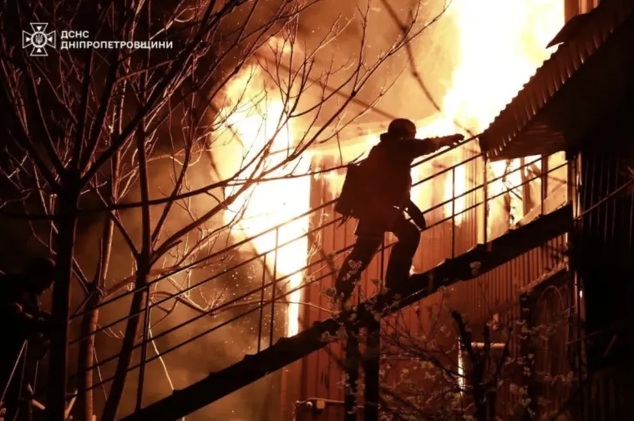 A firefighter works at the site of a Russian drone strike in Dnipro, Ukraine [File: Handout/Reuters]