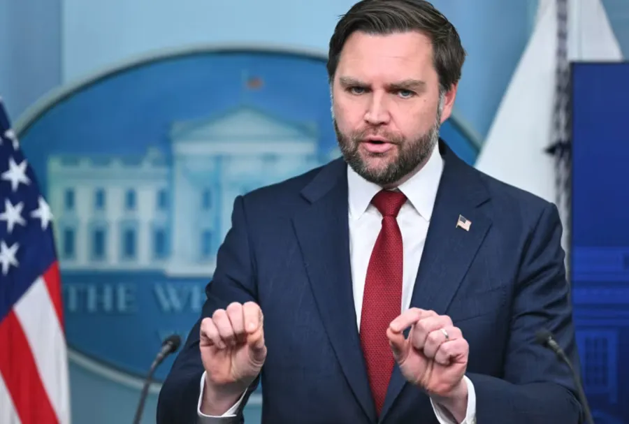 US Vice President JD Vance speaks during a press briefing in the Brady Briefing Room at the White House on January 8.