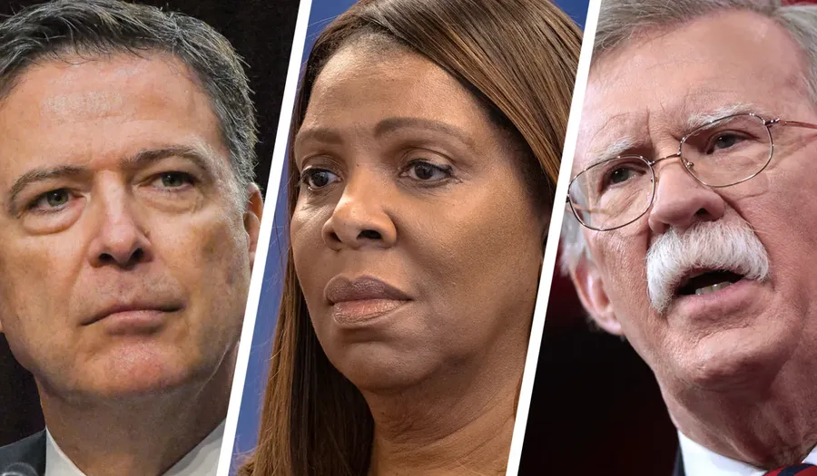James Comey, Letitia James, and John Bolton